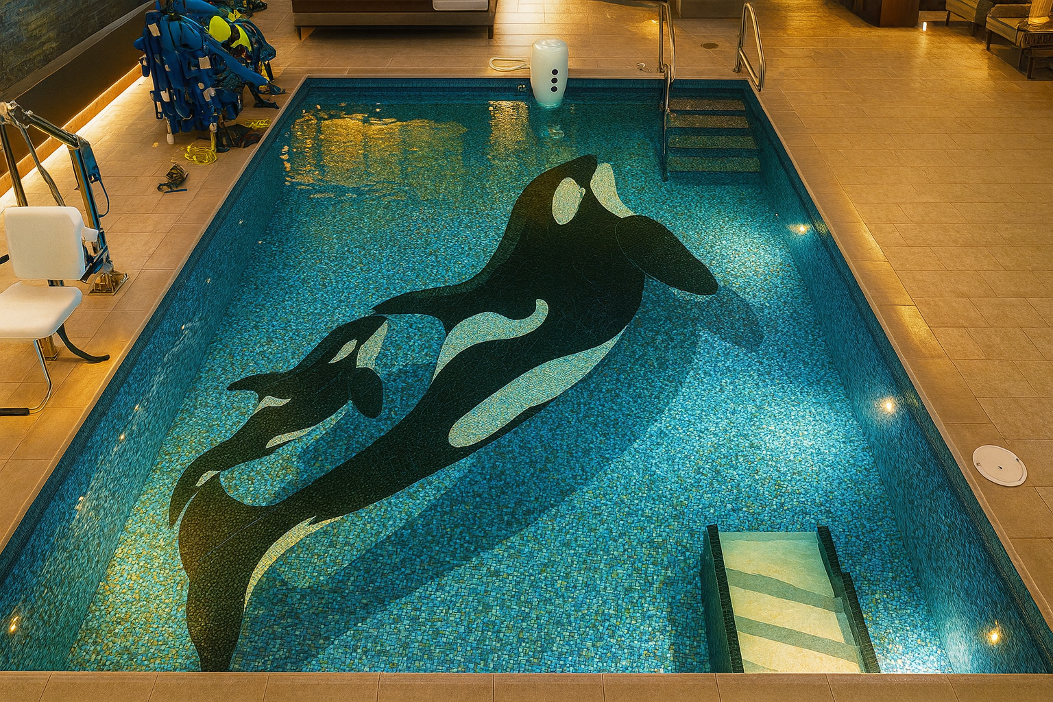 Beautiful custom Tierra tile whale mosaic in main lobby